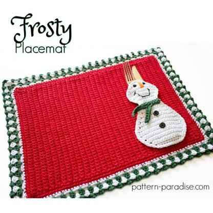This placemat is super cute with an adorable, chubby snowman to hold your silverware in place. The snowman applique can be used for lots of other projects too. The placemat is a simple variation on the single crochet worked vertically for an interesting texture that forms the background base for the applique and darling edging.