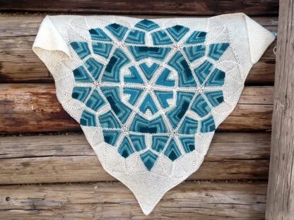 FROZEN is a modular shawl that doesn't require seaming. The stitches for every motif are picked up from the existing elements. It is easy on hands, because you work on only a small number of stitches, but there are some ends to weave. Because it is a modular knitting, every element is worked independently – you can use different colors for each. The coloring page in this PDF will help you to decide about the colors.