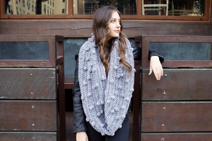 The Frozen Lake Infinity Scarf was inspired by the feeling of ice skating on a lake as a child. That sensation of freedom and excitement and happiness in the cold air. Twirling in circles and laughing and gliding. A sprinkling of bobbles is added for extra pops of joy and cozy and to represent snowballs and big fluffy snowflakes.