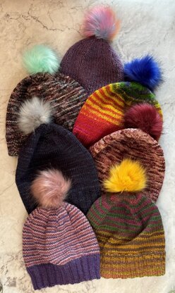 I’ve outlined three stitch patterns for the brim: 1 x 1 rib, 1 x 1 twisted rib, and 2 x 2 rib, and the main body of the hat is worked in stocking/stockinette stitch. So you can mix things up a bit, I’ve added some instructions on knitting in stripes - including helix/helical knitting for stripes that change colour every round.