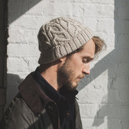 Fulton is a striking watch cap that features bold and modern cables paired with a satisfyingly deep brim. Fulton is available in two styles–watch cap (shown) and a slouchy beanie–for versatility and style preference. Please note, instructions for cabled stitch patterns are provided in charted form only.