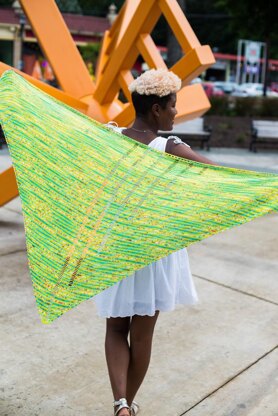 One of the simplest shawl shapes to make is a bottom up triangle. The knitter increases two stitches per row, one stitch on each edge. One of the simplest forms of color-work is knitting stripes. You work with two different balls of yarn and then alternate between knitting two rows of each color.