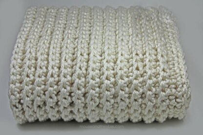 The beautiful cable-like texture of this soft and bulky afghan is created by simply working single crochet stitches (same as double crochet in UK/Australia) into the back loops of stitches. Pattern includes 4 sizes: Infant Photo Prop, Baby Blanket, Chair Throw, and Sofa Throw.