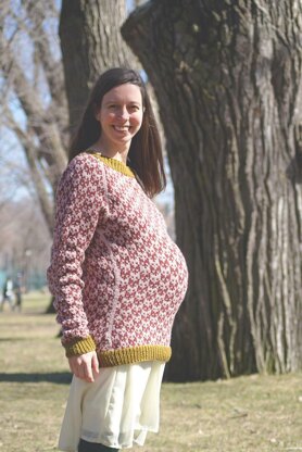 I knitted the sweater with a lot of positive ease because I wanted something comfortable which could accommodate my pregnant belly! You can also choose a more fitted size, the waist decreases will fit your silhouette.