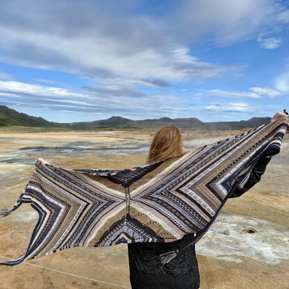 Originally designed for (and photographed during!) the KNITopia 2024 cruise to Greenland and Iceland, Góða Skemmtun uses an interesting construction (no seams!) to create a striking shawl.