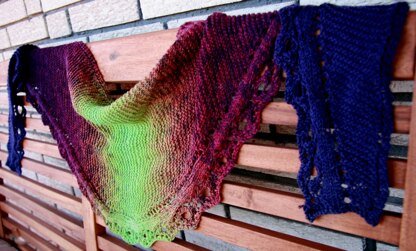 It is knit side to side, from one point to the other. It’s perfect for a gradient yarn, or it can showcase a beautiful variegated or handspun yarn.