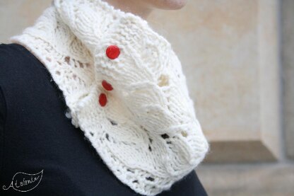 This cowl is inspired by the fairy tale “die Gänsemagd” or “[the goose girl][2]”. In this the eponymous heroine is a princess who is send to a different country to get married. Her mother gives her a kerchief with three drops of blood to identify herself. Thanks to her evil maid she drops said kerchief into a river and later becomes the goose girl as she can't prove she's the real princess.