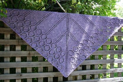 This quickly knit shawl starts with a simple stocking stitch and eyelet pattern, and then transforms into an all-over lace pattern. As a whole, it resembles leaves growing up a trellis at the beginning of spring. It’s large enough to wrap around your shoulders, but small enough to wind snugly around your neck. The stitch pattern is charted.