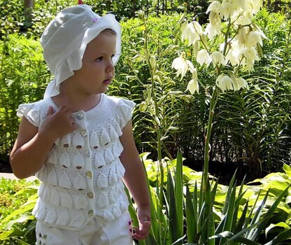 Cardigan has been worked in one piece bottom-up without any seam. Special cake of this model - ”bells” pattern which embellishes cardi.