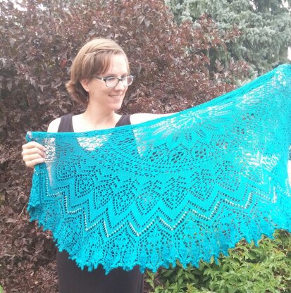 This shawl was designed for my cousin as a wedding gift. The pattern is both written (line by line instructions) and charted (every row) with many changing motifs.