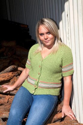 The delicate trim at the sleeves and waist has stripes, lace and optional beading for a pretty, feminine look. It would also be effective with a touch of metallic or sparkly yarn, for an evening look.