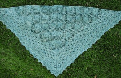 My pattern inspiration is from an old counterpane square from the book “Knitting Counterpanes” by Mary Walker Phillips. Every time I look through that book, I get inspired. When I realized the square had a self-repeating stitch pattern in it, all kinds of projects went through my head, but designing a shawl with the stitch pattern was the project I was most excited to start. After completing the body of the shawl, one design element just seemed to flow into another. I had so much fun designing this, and it was a quick knit for me, since I couldn’t wait to see it blocked. I hope you enjoy this pattern as much as I do.