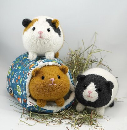 Knit a trio sweet and cuddly Guinea Pigs from this easy to follow pattern! If you're new to knitting toys, you can start with the one-colour variety. If you want to try some fun intarsia, try out the two- or three-colour varieties.