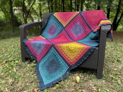 • 3.5 mm (E) size hook (I used Limited Edition Snakewood Alpha by Furls)• NOTE: If you crochet loosely I advise you to use a 3 mm (5/0) size hook • 4 Scheepjes Whirls and 3 Whirlettes in the following shades and quantities: o Whirls: 4 x Rosewater Cocktail (776) o Whirlettes: 3 x Blueberry (854) or approximately 5374 yards/ 4914 meters of fingering weight yarn • Yarn needle for weaving in ends • Scissors • Stitch markers (optional) • NOTE: Blocking is essential to enhance the lacy, textured patternwork of your blanket