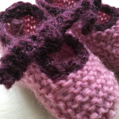 These little slippers can be made very quickly and easily and use very little yarn - perfect for a last-minute gift or treasured heirloom made from superior quality yarn. They are worked from the bottom up from a traditional cast-on edge, but could easily be made from a provisional cast on with a cast-off seam for extra comfort. The pattern can be adapted to one colour or with alternative fastenings to suit your taste; I find the straps I photographed are robust and effective, but they would work just as well if 30cm long and with a criss-cross fastening, traditional ballerina style. Sizing is aimed to suit a baby from birth to walking, in three sizes.