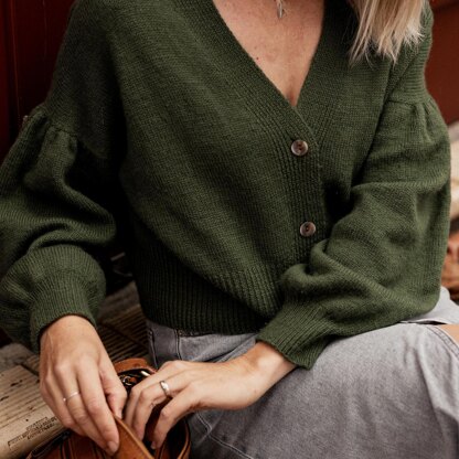 Knit with 4-ply yarn, the Gather Sleeve Cardi is worked from the top down, beginning with the back neck ribbing which is picked up to create the back panel. You will then pick up along the shoulders and work the fronts (together with the neckband) to the underarms. The body is worked flat and the sleeves are worked in the round.