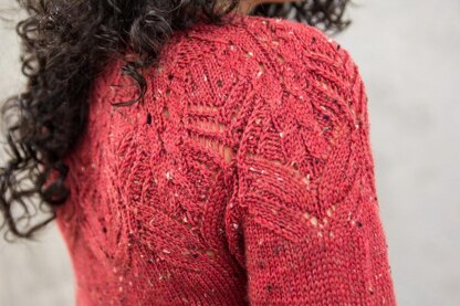 Curving and climbing stitches surround the uniquely pretty yoke of this sweater!