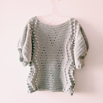 Geo Top is a modern, unique piece of clothing. It features puff sleeves and fun popcorn stitches.