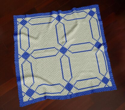 Geometric Blanket created using the C2C crochet technique. Featuring a bold lattice-style design in crisp blue lines on a soft cream background, framed with a solid blue border. This modern yet timeless motif works beautifully as a statement throw, bed cover, or sofa accent. Ideal for geometric décor lovers.