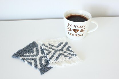 Geometric Mug Rug Digital Pattern This crochet pattern gives you instructions on how to make your own Geometric Mug Rug, perfect to add to your home decor. The colours can easily be changed to match your theme! 📋Pattern Details - Written in US crochet terms - Written Instructions and Pattern Graph available - Suitable for beginners, but it does require you to have some knowledge of crochet terms. - Tapestry Crochet technique used - Pattern is available for instant download once you have purchased. - This pattern will create a wall hanging that is 8.5cm wide and 9cm tall (without the tassels), when the suggested yarns are used. - Pattern has been tested by pattern testers 📏Materials Required • 4.00mm Crochet Hook • Cotton Aran in 2 colours • Scissors • Tapestry Needle