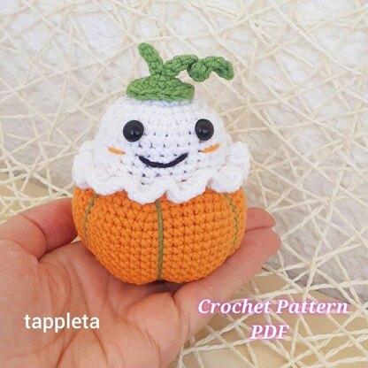 Cute baby ghost in pumpkin. Crochet Pattern PDF. Amigurumi Ghost crochet Halloween decor.
