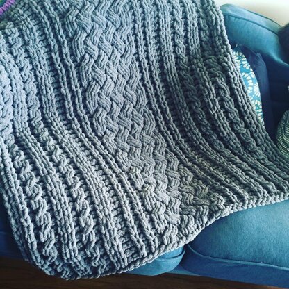 THIS IS A LOOP YARN FINGER-KNITTING PATTERN. The Giant Celtic Woven Braid Blanket features an 8-strand chunky woven braid, surrounded on both sides by flat cables and ribbing. NOTE: While this pattern is written for Alize Puffy yarn, UK knitters can substitute Bernat Alize Blanket-EZ yarn for a blanket of approximately the same size - you will only need 5 skeins.
