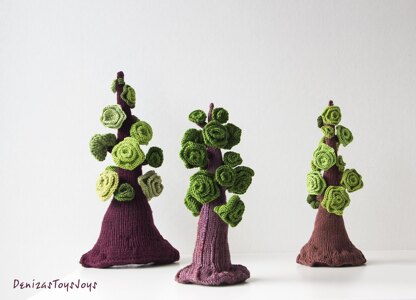 All trees are knitted by the same pattern. But I used different yarn and needles sizes. Also I want to say that this pattern is perfect for your imagination. You do not have to fully follow my description. You can change the quantity of the rows. Make differen quantity branches and Fir-needles. For Fir-needles you can use any colors and shades of green color at the same branch also. You can make more or less quantity Coniferous branches. You can make them thinner or thicker, shorter or longer… Everything you want!!! Do not be afraid to experiment!
