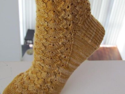 Gilded is an ornate design perfect for both as a dressier sock and easily dressed down too.The gilded pattern is a 20 stitch repeat and works perfectly with light fingering weight yarns.