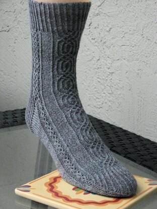 Skill Level: Intermediate; Pattern assumes basic knowledge of top-down sock construction, cabling, decreases, and chart reading (which is very important!). Materials: 1 Set of US1.5 DPNs or size to achieve gauge (Some of my testers used the Magic Loop method and stitch markers with no problems), Cable Needle (or be able to cable without a needle-- strongly recommended!), tapestry needle, scissors, measuring tape Yarn: approx. 400 yds of fingering weight is needed. Ease: Very slightly negative-- it’s a stretchy sock. Size & Measurements: Small (64 stitches) & Large (72 stitches) --Calf: 9(11) inches measured cuff to heel --Foot: 8(9) inches measured heel to toe --Gusset: approx. 10 inche