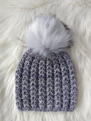 Pattern is written for adult size, with instructions for 5 different yarn weights: super bulky, bulky, light bulky, worsted, and DK. It features a unique stitch that is so pretty and stretchy. Brimless so you can get started with the pattern right away!