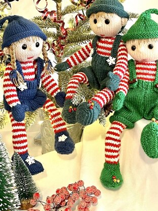 Ginger and Snap Elves measure 10 inches/26cm from head to toe. They are knitted flat, feet, legs, and body in one piece, head, arms, and ears are knitted separately and attached. I have included a step by step making up guide to help you with lots of photos, hints, and tips. They are actually the same size as the Tree Fairy I published last year and make a lovely matching pair for your Christmas Tree or sit nicely on a shelf as a decoration. They are very flexible if you would like to use them to pose for Christmas elf tricks to entertain your children or grandchildren.