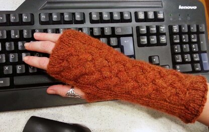 Gingerbrade Fingerless Mitts have a top down construction, from fingers down to the wrist, allowing one to easily check the length and adjust as desired. The pattern is in writing and chart format. Instructions are given for both working in the flat or in the round.