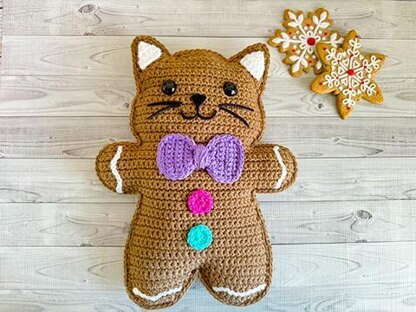 Our finished Gingerbread Kitty Kawaii Cuddler® is 13″ x 10". Hook size, yarn choice, and crochet tension will affect each individual result.