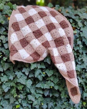 Gingham pattern on this triangle shawl is created by arranging simple granny squares (and triangles) in three corresponding shades. Soft wool will keep you warm and cozy throughout fall/winter season, without compromising on style.