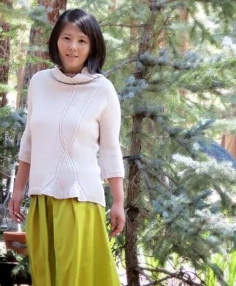 Top-down pullover with ginkgo motives. Stems are designed to cross at knitter's own natural waist, can be move up or down according to knitter's body measurements.