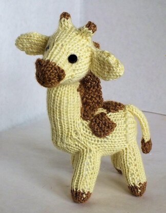 The Giraffe when using bulky or chunky yarn you will need 2 skeins of yellow and 1 skein of medium brown or tan yarn. It is a larger stuffed animal. This is an intermediate level pattern due to certain techniques that are used in this pattern. The hardest part of the pattern is the head, and the body to neck change in the body. Otherwise the pattern isn't too difficult. Lots of sewing is involved as well. This is a wonderfully cute pattern that a child will just love. When you purchase this pattern you will also get a link to a private youtube tutorial about how to do the pattern for those who need visuals.