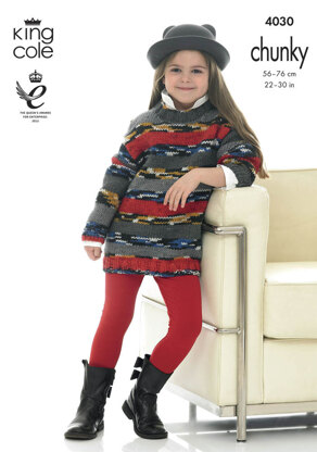 Girl's Sweater Dresses in King Cole Big Value Multi Chunky - 4030 - Leaflet