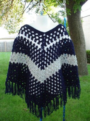 This is the style I learned to crochet in the seventies. Is so easy and fast to make. You can use as many colors as you want, I can remember how we loved these with each row in a different color This Poncho is crocheted in the round from the top.