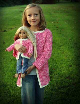 Make this beautiful cardigan for your little girl and her 18" doll!