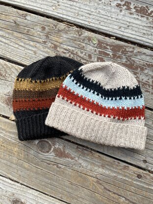 The non-superwash version was knit in size 3 with Blue Sky Fibers Woodstock Worsted. 37g of ‘Driftwood’ for MC. CC1 used 5.5g ‘Rusted Roof’, CC2 used 5.5g ‘Thermal Spring’, CC3 used 5.5g ‘Midnight Sea’.