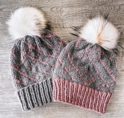 It is the perfect match to go with the Glacial Peaks Cowl. It uses stranded color work to bring the mountain peak design to life. It is a great unisex beanie.