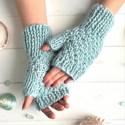 Glaciers are so beautiful and if you get the chance to go inside one, it really is very blue and sparkly. This stitch forms little sparkly diamonds and the blue yarn adds to the glacier feeling. Great for when you’re out and about, as fingers are free for fiddly tasks. Chunky/bulky yarn adds to that cosy feeling.