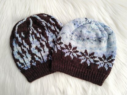 Fire and Ice. Bluebell Flames and Glacius. Capturing these magical charms and spells with these fun fair isle designs! With 2 skeins in contrasting colors, you can make both hats and either a Glacius headband or a child sized Glacius hat! Glacius - a retro-vibe with a classic snowflake motif. Pattern instructions include suggestions for a headband. This one is also fairly easily to adjust for different head sizes given the motif and basic stockinette to the crown. Bluebell Flames - Blue fire climb up in columns and extend to the crown. Adult size only. Skills - Must be familiar with knitting from charts and catching floats. (I consider fair isle an advanced skill) ** Pattern is only charted for the fair isle portions, not written.