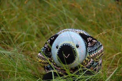 This is a pattern for a knitted sheep toy worked using the Fair-Isle knitting technique. It is worked in-the-round and in 9 pieces (body, head, 4 feet, tail, and 2 ears).