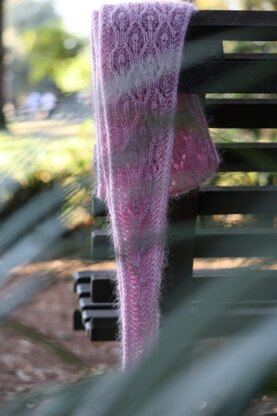 The Glowing Ember Scarf is a soft, airy lace design inspired by the quiet warmth of glowing embers and winter light. Knit with a combination of merino and mohair for a delicate halo and gentle drape, this scarf brings cozy elegance to any wardrobe.