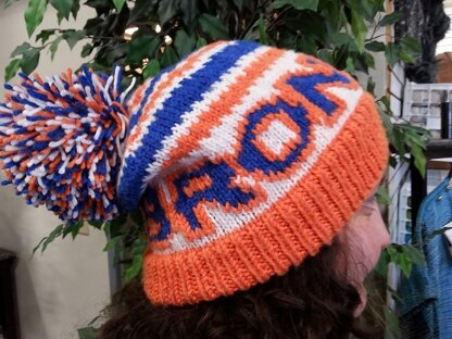 show off your Bronco Pride with this beanie! By using stranded colorwork for the Broncos lettering. Duplicate for the orange outline of the lettering! A prefect way to get your feet wet with colorwork!