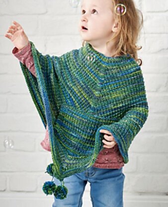 This poncho has a textured body and is a quick knit. The pattern has 3 sizes from 3-4, 5-6 and 7 -8 years. A DK yarn is used in colours of choice.