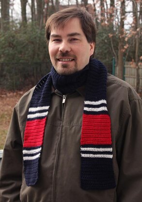 A quick and easy pattern that shows your team spirit! Pick your team colors and use simple stitches to create a varsity stripe that works for men or women, kids or adults. You can even add a team patch to the wide stripe. Pattern will work with DK, worsted, or even aran weight yarn. The pattern is easily customized to the length and width you want.