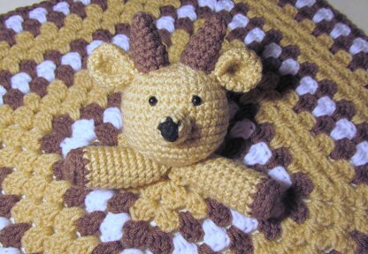 Finished Measurements Horns: 1 ½ inches Snout: ¾ inch Ears: 1 ¾ inch Head: 3 inches front to back Legs: 3 inches long Blanket: Approx. 18 inches or desired size