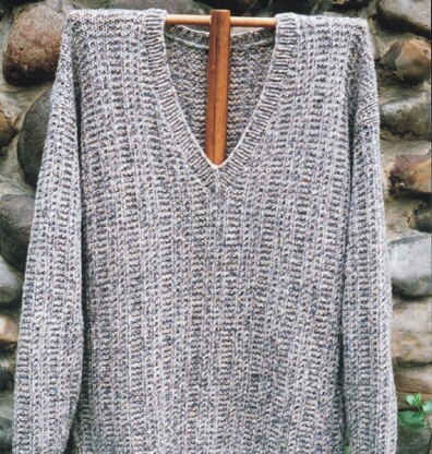 An easy-to-knit V-neck, drop-sleeve pullover for men knit in dk or worsted weight yarn.